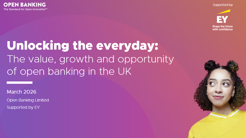 Unlocking the EverydaY:The Value, Growth and Opportunity of Open Banking in the UKNew independent economic analysis commissioned by Open Banking Limited (OBL) and with analysis completed by EY provides, for the first time, a quantified view of the value open banking is delivering for consumers, businesses and the wider economy. This analysis offers an evidence‑based understanding of how open banking is shaping everyday financial activity and where further opportunities may develop in the years aheadScroll for more